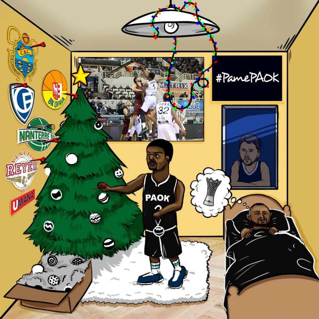 O ΠΑΟΚ βρίσκεται σε... καλό φεγγάρι, έχει πέντε συνεχόμενες νίκες και σήμερα (18/12) αντιμετωπίζει εκτός έδρας την Τέλεκομ Μπον. Το Basketall Champions League με μια γελοιογραφία του συνδύασε το σερί της ελληνικής ομάδας με το κλίμα των ημερών και έθεσε το ερώτημα "ποιος μπορεί να σταματήσει τον ΠΑΟΚ;" Δείτε το αποτέλεσμα της έμπνευσης που περιέχει και Χριστουγεννιάτικο Δέντρο.