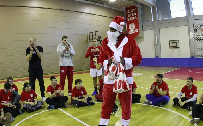 Για την ακρίβεια οι παίκτες του Ολυμπιακού πρόσφεραν χαμόγελα στα παιδιά από το 2ο ΕΕΕΕΚ Πειραιά Άνοιξη στο πλαίσιο του προγράμματος "One Team" της Εuroleague με τον Μπράντον Πολ να επιφυλάσσει το καλό για το τέλος κάνοντας την εμφάνισή του με την στολή του Άγιου Βασίλη και προσφέροντας δώρα και χαρά στα παιδιά.