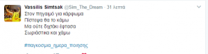 Παγκόσμια ημέρα ποίησης και ο Βασίλης Σίμτσακ έγραψε το δικό του… τετράστιχο. Με ομοιοκαταληξίες, χιαστί στοίχιση και… πολύ γέλιο!