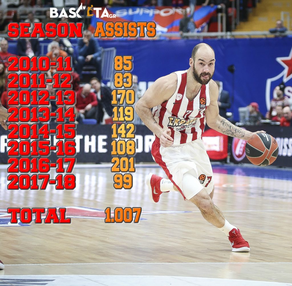 Ο «V-Span» έφτασε και ξεπέρασε τις 1.000 ασίστ με την ερυθρόλευκη φανέλα στην Ευρωλίγκα και έγινε ο 2ος παίκτης μετά τον Δημήτρη Διαμαντίδη που φτάνει σε τετραψήφιο αριθμό ασίστ με μία ομάδα στην ιστορία της διοργάνωσης.