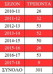 Ο Σπανούλης είναι στην κορυφή της λίστας των παικτών με τα περισσότερα τρίποντα στην ιστορία του Ολυμπιακού. Μία θέση στην πρώτη 10άδα έχει από προχθές ο Ιωάννης Παπαπέτρου. Ο διεθνής φόργουορντ ευστόχησε μία φορά πίσω από τη γραμμή των 6,75, έφτασε τα 65 και ξεπέρασε κατά ένα τον Λιν Γκριρ.