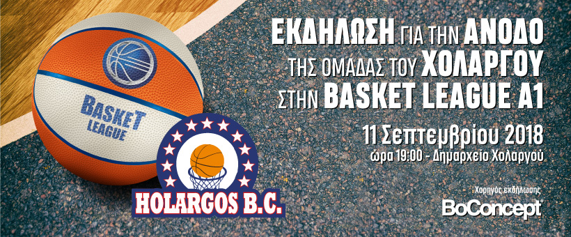 Πριν από την έναρξη των επίσημων αγωνιστικών υποχρεώσεών του, ο Χολαργός θα παρουσιάσει την ολοκαίνουρια ΚΑΕ του και την ομάδα, η οποία θα επιχειρήσει στην παρθενική σεζόν της στη Basket League να συνδυάσει την ευπρόσωπη παρουσία με την παραμονή στην κατηγορία. Η σχετική εκδήλωση θα πραγματοποιηθεί στις 11 Σεπτεμβρίου στο Δημαρχείο Παπάγου Χολαργού και η ΚΑΕ με ανακοίνωσή της έκανε γνωστές τις λεπτομέρειες: