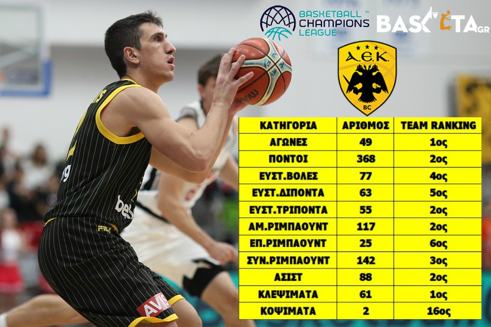 Κάνοντας το 49/50, ο Λαρεντζάκης είναι ψηλά σε όλες τις λίστες της ΑΕΚ στο BCL...