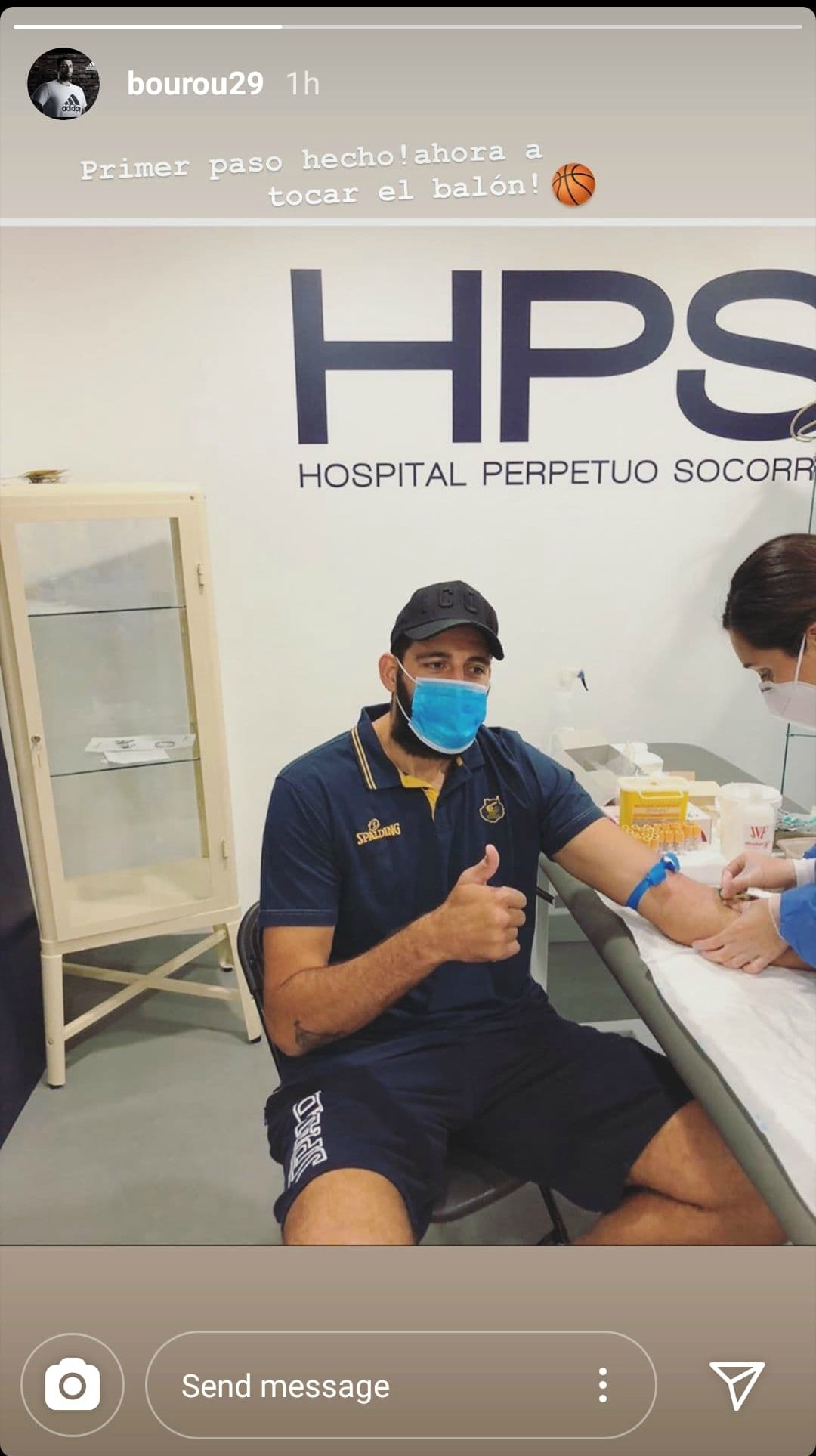 Ο Έλληνας σέντερ, ανέβασε μία φωτογραφία στον προσωπικό του λογαρισμό στο Instagram, από τη στιγμή που υποβαλλόταν στο απαρίτητο τεστ κορωνοϊού.