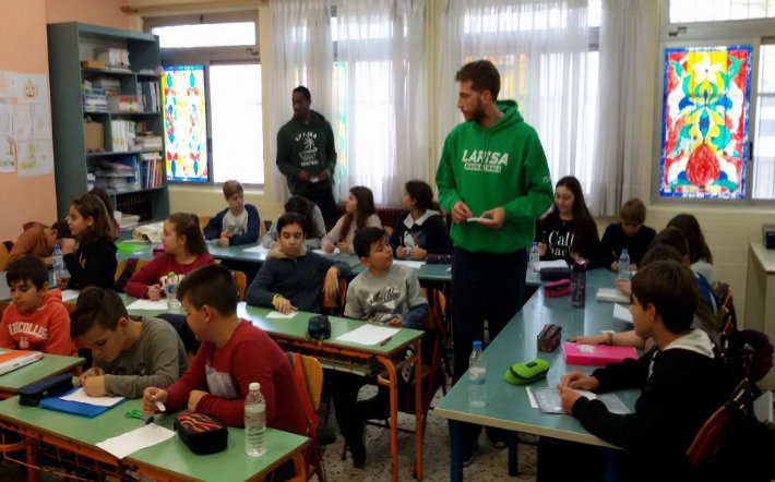 Οι Γιάννης Βαβάτσικος, Βασίλης Μουράτος και Νταβιγιόν Ντρέιπερ μίλησαν στα παιδιά για τον αθλητισμό, δίνοντας τις συμβουλές τους και τους μοίρασαν εισιτήρια για το θεσσαλικό ντέρμπι του Σαββάτου (11/11, 16:30) στο κλειστό της Νεάπολης κόντρα στα Τρίκαλα.