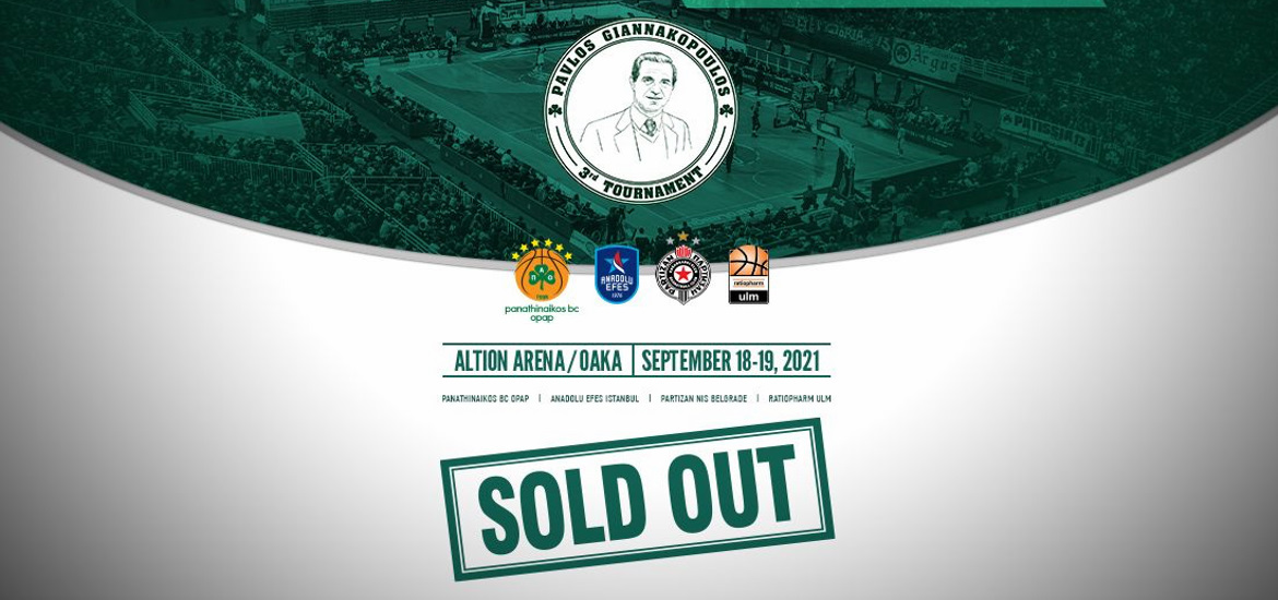 «Η ΚΑΕ Παναθηναϊκός ΟΠΑΠ ανακοινώνει πως εξαντλήθηκαν τα διαθέσιμα εισιτήρια για το 3ο τουρνουά «Παύλος Γιαννακόπουλος», το οποίο θα λάβει χώρα στο ΟΑΚΑ το διήμερο 18-19 Σεπτεμβρίου, στη μνήμη του κορυφαίου παράγοντα του Συλλόγου.