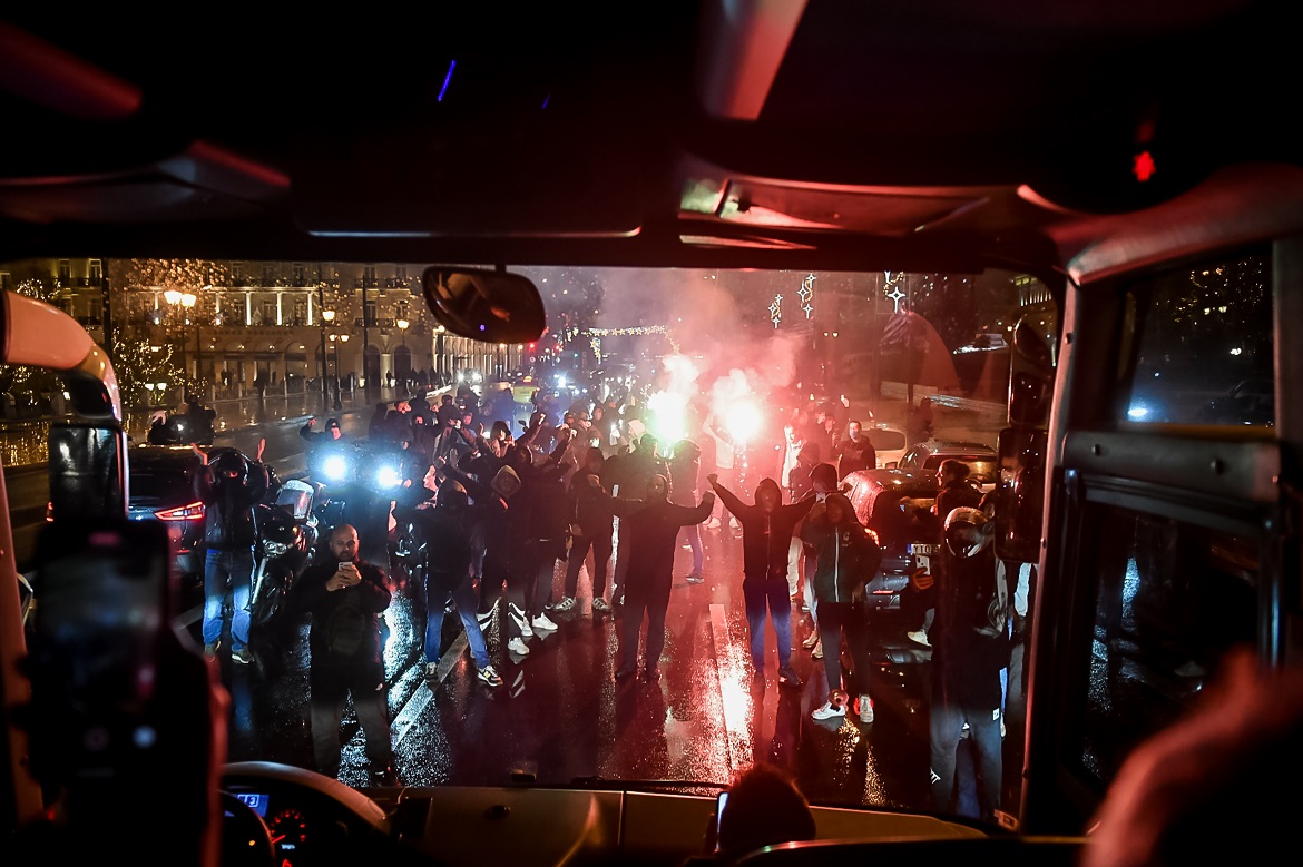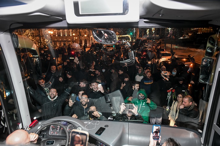 Στο Σύνταγμα λοιπόν, έξω από την Βουλή, εκατοντάδες οπαδοί του Παναθηναϊκού έστησαν «μπλόκο» στο πούλμαν και μαζί και το πάρτι της νίκης, αποθεώνοντας τα μέλη της αποστολής.