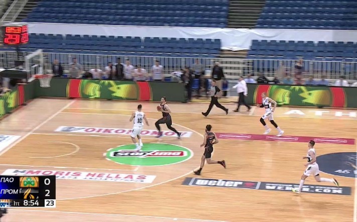 Ο Μάριο Χεζόνια δεν τα βρήκε πάντα εύκολα απέναντι στην άμυνα του Προμηθέα, όπως έγινε στο κάρφωμά του, με τον Τζέριαν Γκραντ να είναι εξαιρετικός στον παίκτη του Παναθηναϊκού και να βοηθά την ομάδα του να φύγει στο ανοικτό γήπεδο, όπου ο Δημήτρης Αγραβάνης θέλησε να δώσει ραχιαία πάσα, αλλά έμεινε... στη θεωρία, αφού η έμπνευση δεν αποδείχθηκε καλή για τον Χάρη Γιαννόπουλο.