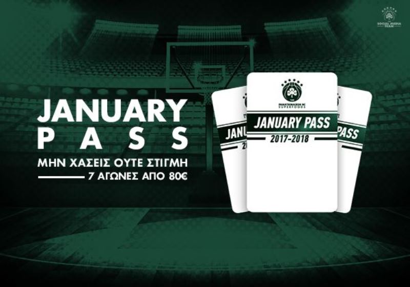 Η ΚΑΕ Παναθηναϊκός Superfoods ανακοινώνει την πως ξεκίνησε η προπώληση τουJanuary Pass,ενός πακέτου για τις εφτά εντός έδρας αναμετρήσεις της ομάδας τον μήνα Ιανουάριο σε ιδιαίτερα προνομιακή τιμή.