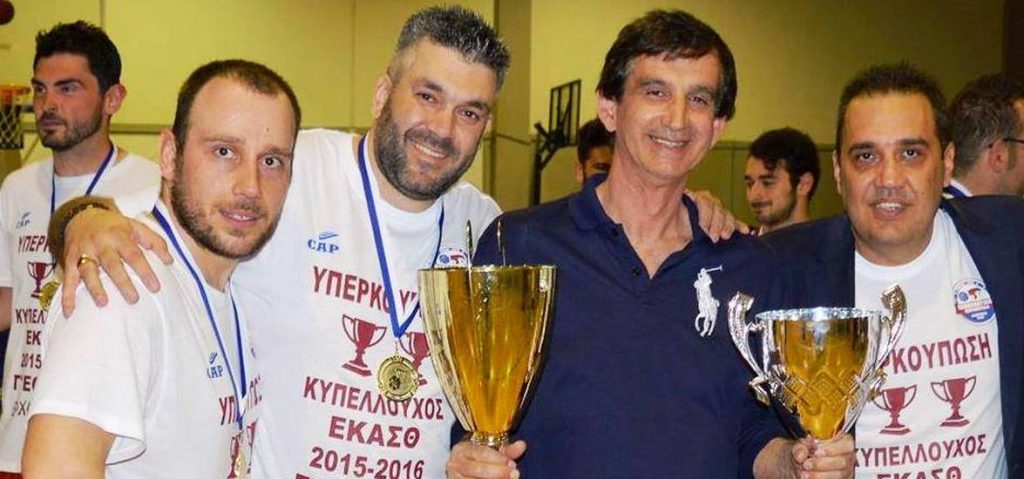 Ο Βασίλης Πρασσάς δεξιά με τον πρόεδρο του συλλόγου κ.Γιαρένη και τους διοικητικούς παράγοντες της ανδρικής ομάδας κ.κ. Ιατρού και Κεχαγιά