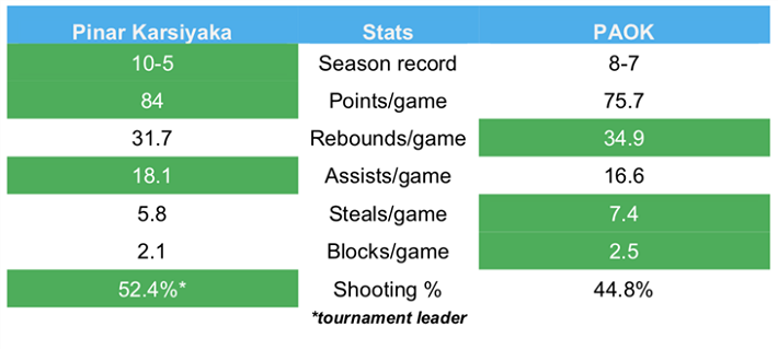 Τι έχουν κάνει ο ΠΑΟΚ και η Καρσίγιακα μέχρι στιγμής στο Basketball Champions League παρουσιάζει η FIBA, εν όψει του επαναληπτικού στη Σμύρνη.