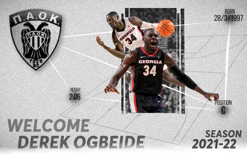 "Η ΚΑΕ ΠΑΟΚ ανακοινώνει την συμφωνία με τον καλαθοσφαιριστή Derek Ogbeide. Ο 24χρονος σέντερ με καταγωγή από τη Νιγηρία, αλλά και Αμερικανική υπηκοότητα, θα υπογράψει συμβόλαιο ενός έτους με την ομάδα μας και είναι ο πρώτος παίκτης που προστίθεται στο ρόστερ του ΠΑΟΚ για την αγωνιστική περίοδο 2021-22.