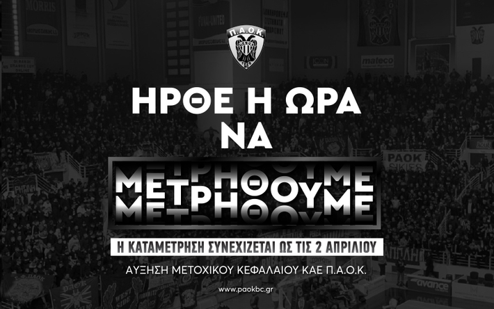 «Η ΚΑΕ ΠΑΟΚ ανακοινώνει ότι η διαδικασία της Αύξησης Μετοχικού Κεφαλαίου της εταιρίας παρατείνεται μέχρι και την Παρασκευή 2 Απριλίου 2021. Αυτή θα είναι και η οριστική ημερομηνία κατά την οποία θα ολοκληρωθεί η ΑΜΚ της ΚΑΕ ΠΑΟΚ.