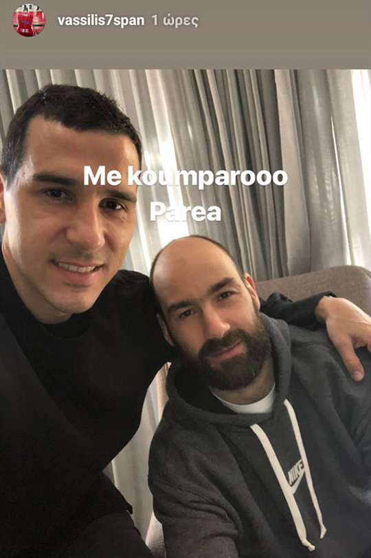 Οι δυο τους συνδέονται με οικογενειακούς δεσμούς, και έτσι επισκέφτηκε τον αρχηγό του Ολυμπιακού ώστε να τους ευχηθεί για τον τραυματισμό του, με τον Βασίλη Σπανούλη να ανεβάζει σχετική φωτογραφία τους στο Instagram σχολιάζοντας: «Με κουμπάρο παρέα».