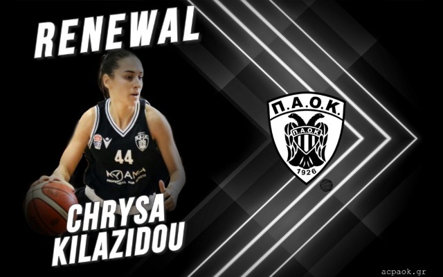 "Ο ΠΑΟΚ και το τμήμα μπάσκετ γυναικών του Συλλόγου μας, ΠΑΟΚ ΚΥΑΝΑ, ανακοινώνουν την ανανέωση συνεργασίας με την αθλήτρια, Χρύσα Κιλαζίδου, για την αγωνιστική χρονιά 2020-21.