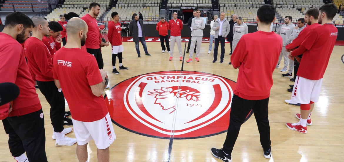 Στη συνέχεια το λόγο πήρε ο Γιώργος Αγγελόπουλος: «Καλωσορίζω τον κόουτς στην ομάδα μας, έναν πρωταθλητή Ευρώπης κι έναν άνθρωπο του Ολυμπιακού. Πρόκειται για έναν εξαιρετικό άνθρωπο, επαγγελματία, με γνώσεις, με εμπειρία. Οι αλλαγές είναι δύσκολες. Ο Ολυμπιακός πάντα έχει στόχους. Η αλλαγή προπονητή δεν είναι πάντοτε η λύση στα προβλήματα. Φέτος η χρονιά μέχρι τώρα δεν έχει πάει καλά και σε αυτό έχετε ευθύνες κι εσείς οι παίκτες. Δεν έχει νόημα αυτή τη στιγμή να κοιτάμε πίσω. Πρέπει να κοιτάξουμε μπροστά και να τα δώσετε όλα. Πρέπει να καταλάβετε πως για τον Ολυμπιακό αυτή η χρονιά είναι κομβική, μια ιστορική χρονιά», σχολίασε αρχικά και πρόσθεσε: «Παίξτε για να κερδίσετε για να πάμε στο Top 8 και πιο ψηλά. Πιστεύουμε πολύ σε εσάς και τις δυνατότητές σας. Πιστεύουμε πως η βαθμολογική θέση δεν έχει καμία σχέση με τις δυνατότητες της ομάδας. Πιστεύουμε πως είναι εφικτός ο στόχος του Top 8 και γενικότερα ο πρώτος στόχος είναι να παίξουμε καλό μπάσκετ… Έχουμε απαιτήσεις από εσάς γιατί πιστεύουμε σε εσάς. Για αυτό είστε εδώ. Όλοι μαζί πρέπει να πετύχουμε και να γίνουμε ομάδα. Δεν γίνεται ο κάθε ένας μόνος του. Όλοι μαζί. Είμαστε ιδιαίτερα περήφανοι που ο κόουτς είναι και πάλι μαζί μας και ελπίζουμε να μας οδηγήσει σε νέες επιτυχίες».