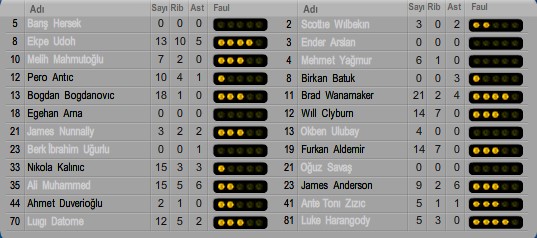 Η Φενέρμπαχτσε έχτισε σχετικά γρήγορα μια διαφορά την οποία μπόρεσε να αυξήσει σταδιακά, φτάνοντας στο +10 (44-34) και στο +18 (57-39, 18'30''). Με τον Ντέιβιντ Μπλατ να φωνάζει σε ιδιαίτερα έντονο τρόπο στον Σκοτ Ουίλμπεκιν στον πάγκο, ο οποίος είχε βάλει την πετσέτα στο κεφάλι του και το είχε κατεβασμένο. Από το σημείο αυτό και μετά δεν ξαναμπήκε στο παιχνίδι.