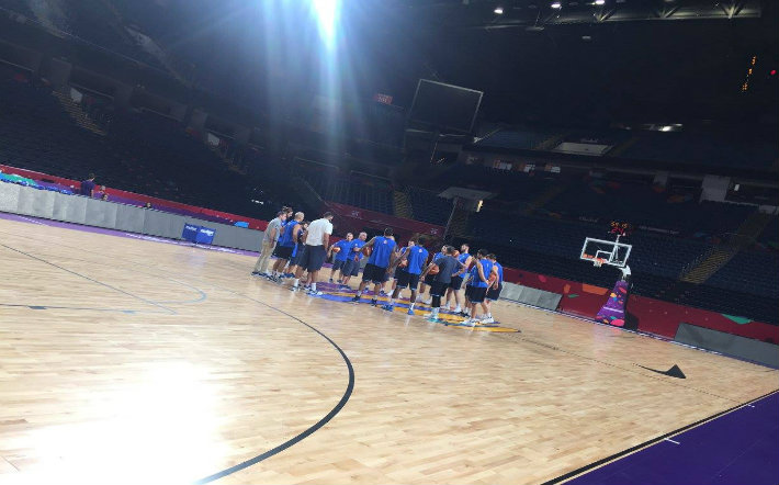 Μετά την... καθυστερημένη άφιξη της αποστολής, η Εθνική Ανδρών προπονείται ενόψει του αγώνα με την Λιθουανία για τους "16" του Ευρωμπάσκετ.