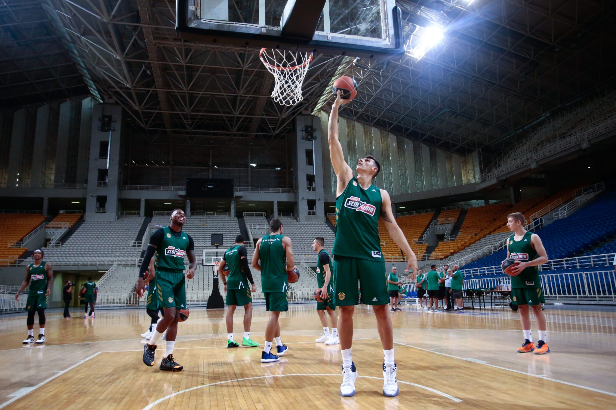 Όλοι οι ξένοι ήταν εκεί, με τους Άλεξ Αντετοκούνμπο και Νίκο Περσίδη να είναι επίσης παρόντες, όπως και ο Τζίμης Κουστένης, που αντικατέστησε στο τεχνικό επιτελείο τον Διαμαντή Παναγιωτόπουλο. Μοναδικοί απόντες ήταν οι τρεις διεθνείς (Καλάθης, Παπαγιάννης, Παπαπέτρου), που θα ενσωματωθούν μετά το Παγκόσμιο Κύπελλο της Κίνας.