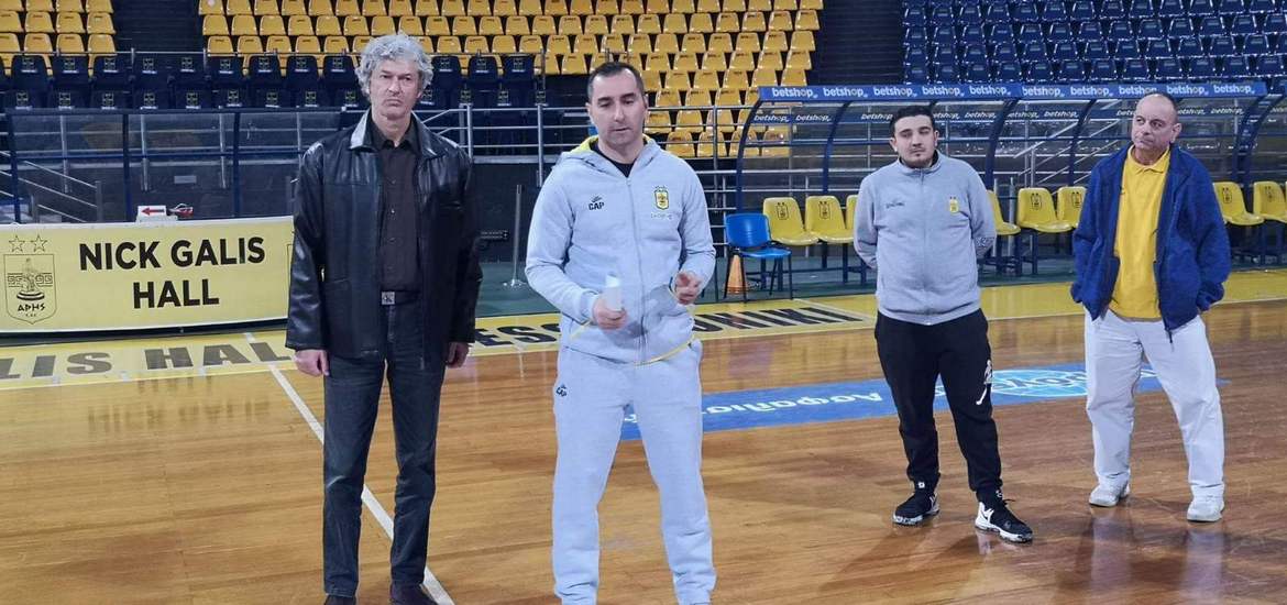 Στο πλευρό του ο έμπειρος Δημήτρης Νικολαίδης που θα είναι ο άμεσος συνεργάτης του αλλά και ο Βαγγέλης Σπυρίδης που παραμένει στην ομάδα αφού διετέλεσε ασίσταντ και του Σούλη Μαρκόπουλου. Στον αντίποδα αποχώρησε οριστικά και ο Παντελής Μπούτσκος, επί σειρά ετών συνεργάτης του Μαρκόπουλου, αφού οι προπονήσεις των δύο προηγούμενων ημερών έγιναν υπό τις οδηγίες του.