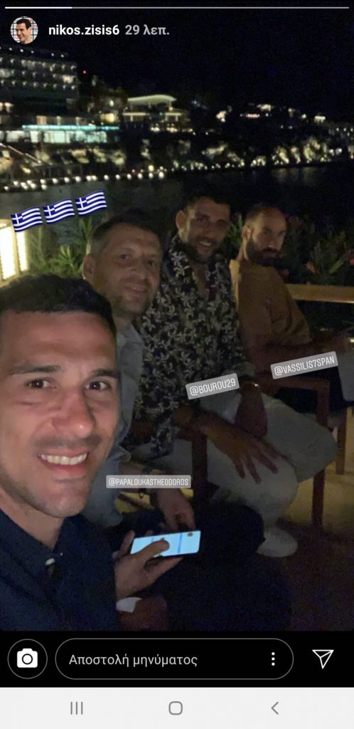 To 1/3 της ομάδας που σήκωσε την κούπα στο Βελιγράδι το 2005 συναντήθηκε και έκανε την βραδινή του έξοδο. Βασίλης Σπανούλης, Νίκος Ζήσης, Θοδωρής Παπαλουκάς και Γιάννης Μπουρούσης είχαν την ευκαιρία να τα πουν χαλαρά με την Εθνική Ομάδα να τους ενώνει.