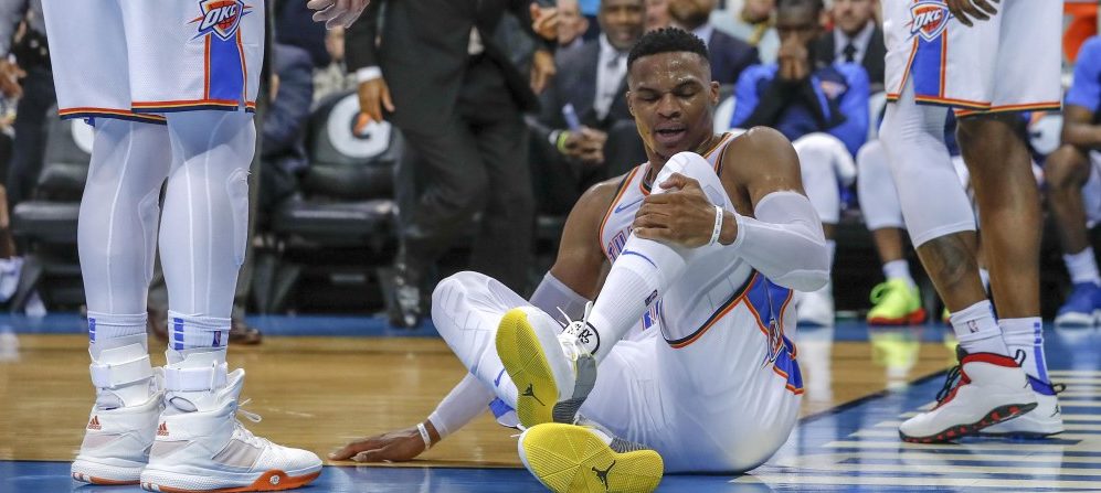 Οι Θάντερ νίκησαν στην Οκλαχόμα Σίτι τους Πέλικανς με 122-116 πετυχαίνοντας την πέμπτη σερί νίκη τους, αλλά... τι να το κάνεις; Ο σούπερ σταρ τους, Ράσελ Ουέστμπρουκ, τραυματίστηκε ξανά. Και μάλιστα φάνηκε αρχικά ότι έπαθε μεγάλη ζημιά, καθώς 4,5 λεπτά πριν από το τέλος της τρίτης περιόδου έπεσε σφαδάζοντας και χτυπώντας με δύναμη το χέρι του στο παρκέ, ενώ λίγο αργότερα αποχώρησε κουτσαίνοντας στα αποδυτήρια. Πάντως, όπως είπε ο κόουτς Ντόνοβαν στη συνέντευξη Τύπου, μάλλον πρόκειται για διάστρεμμα, χωρίς ωστόσο να δώσει περισσότερες λεπτομέρειες. Θυμίζουμε ότι ο Ουέστμπρουκ είχε χάσει το ξεκίνημα της σεζόν εξαιτίας ενός άλλου τραυματισμού, που τον είχε ταλαιπωρήσει από την προετοιμασία.