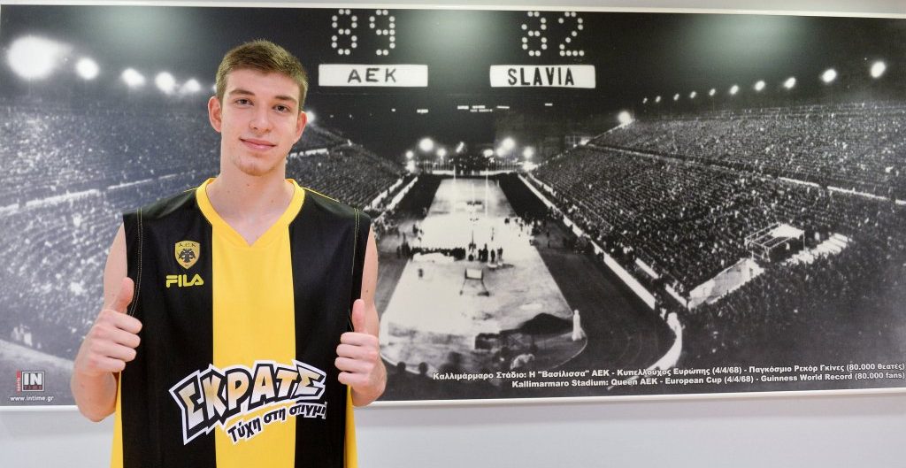 Στην ηλικία του δεν είναι για πολλές δηλώσεις, όμως, το απαιτεί η ημέρα. Άρτι αφιχθείς (μαζί με τους γονείς του) από τον Ελαιώνα Αχαϊας, και με άδεια της Ομοσπονδίας, όπου προετοιμάζεται με την Εθνική ομάδα, στα Γραφεία της ΑΕΚ B.C.
