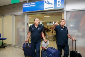 Ήρεμοι, παράλληλα όμως φανερά στενοχωρημένοι, ο Θανάσης Σκουρτόπουλος και οι παίκτες του επέστρεψαν την Τετάρτη (11/09) στη χώρα μας.