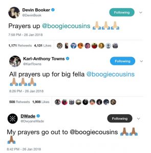 Στο πλευρό του στάθηκε, αμέσως, ο Λεμπρόν Τζέιμς. Ο «βασιλιάς», που τον επέλεξε στην ομάδα του για το φετινό All Star Game, με το που άκουσε τα δυσάρεστα μαντάτα από τη Νέα Ορλεάνη έγραψε στον προσωπικό λογαριασμό του στο Twitter: «Οι σκέψεις μου στον Ντε Μάρκους Κάζινς. Ελπίζω να είσαι καλά, φίλε». Ο ένας μετά τον άλλον, κι άλλοι NBAers, έγραψαν το σχόλιό τους για τον άτυχο φόργουορντ/σέντερ.