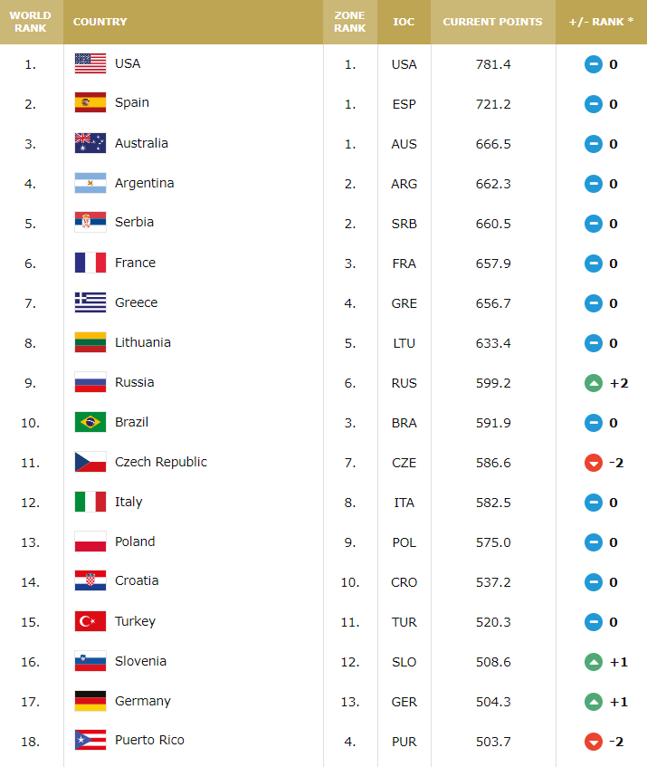 Η «επίσημη αγαπημένη» εξακολουθεί να συγκαταλέγεται στην αφρόκρεμα του αθλήματος, καθώς πέρα από την έβδομη θέση στον κόσμο, φιγουράρει στην τέταρτη θέση της Ευρώπης, πίσω μόνο από Ισπανία, Σερβία και Γαλλία. Η βαθμολογία, έτσι όπως έχει διαμορφωθεί, δείχνει πως το αντιπροσωπευτικό μας συγκρότημα θα έχει την ευκαιρία στα επόμενα «παράθυρα» να διεκδικήσει την άνοδο στην κατάταξη τουλάχιστον κατά μια θέση.