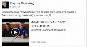 Θέση πήρε και ο Χρήστος Μυριούνης, αναφέροντας σε δικό του ποστάρισμα: «Ευχαριστώ τους «συνάδελφους» για τα καλά τους λόγια στα πρώτα 5 δευτερόλεπτα της συνέντευξης τύπου τους!!!», αλλά και ο 32χρονος Αγρινιώτης αθλητής, Γιώργος Μπερερής.