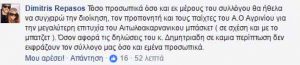 Την θέση της Διοίκησης του Χαρίλαου Τρικούπη σχετικά με της δηλώσεις του προπονητή της ομάδας, Γιάννη Δημητριάδη, εξέφρασε ο ισχυρός άνδρας της ομάδας, Δημήτρης Ρεπάσος, ο οποίος σε σχόλιο του ανέφερε πως οι δηλώσεις του προπονητή του, δεν εκφράζουν τον ίδιο και τον σύλλογο: «Τόσο προσωπικά όσο και εκ μέρους του συλλόγου θα ήθελα να συγχαρώ την διοίκηση, τον προπονητή και τους παίχτες του Α.Ο Αγρινίου για την μεγαλύτερη επιτυχία του Αιτωλοακαρνανικου μπάσκετ ( σε σχέση και με το μπατζετ ). Όσον αφορά τις δηλώσεις του κ. Δημητριαδη σε καμία περίπτωση δεν εκφράζουν τον σύλλογο μας όσο και εμένα προσωπικά».