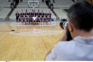 Οι παίκτες του Θανάση Σκουρτόπουλου άφησαν για λίγο στην άκρη τις προπονήσεις και πόζαραν μπροστά από το φωτογραφικό φακό, εν μέσω πολλών χαμόγελων. Η επίσημη φωτογράφιση με αφορμή την παρουσία της «γαλανόλευκης» στα ασιατικά παρκέ (31/08-15/09) έγινε στο πλαίσιο του πρώτου σταδίου της προετοιμασίας της, στο ΟΑΚΑ, πριν ξεκινήσουν τα φιλικά επί κρητικού εδάφους.