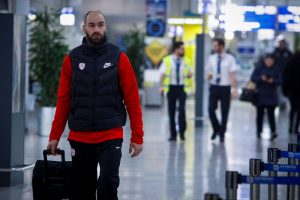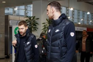 Η αποστολή αναχώρησε το πρωί της Τετάρτης (23/01, 09.35) για τη γείτονα χώρα, από το «Ελευθέριος Βενιζέλος», εν όψει του παιχνιδιού της Πέμπτης (24/01, 19.30), το οποίο όπως ανακοινώθηκε θα σφυρίξουν οι Λουίτζι Λαμόνικα (Ιταλία), Ματέι Μπολτάουζερ (Σλοβενία) και Κάρλος Περούγκα (Ισπανία).