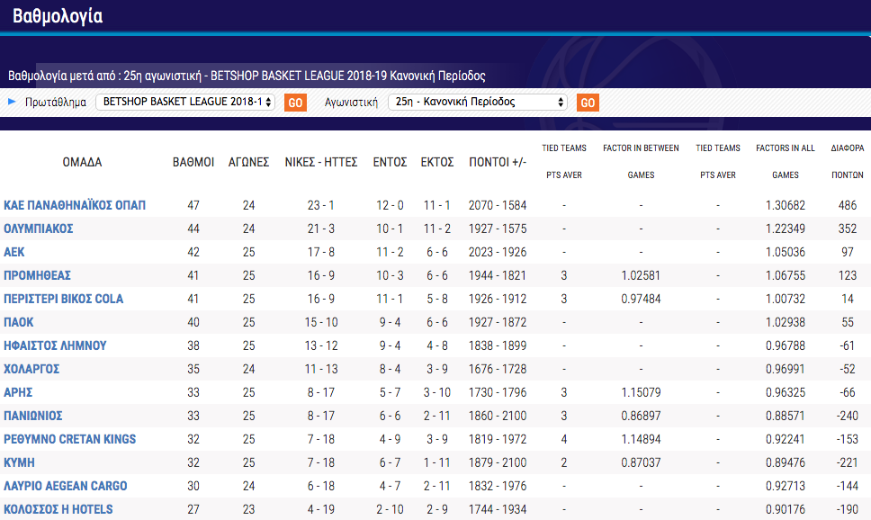 Η βαθμολογία της Basket League