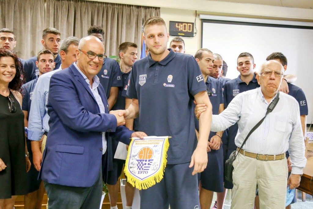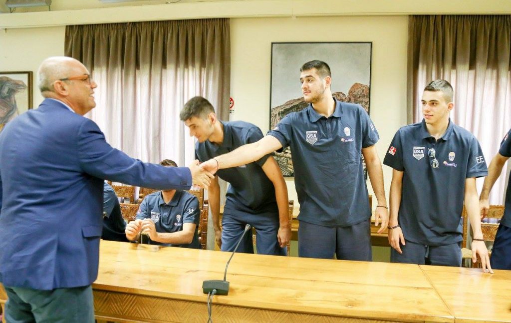 Ο δήμαρχος, Αναστάσιος Βαμβούκας, καλωσόρισε την αποστολή της ομάδας, συνομίλησε με τους παίκτες του Ηλία Παπαθεοδώρου και τους ευχήθηκε ενόψει του Ευρωπαϊκού U20 (15-23/7). Η ομάδα του δώρισε ένα λάβαρο της Εθνικής με τις υπογραφές όλων.