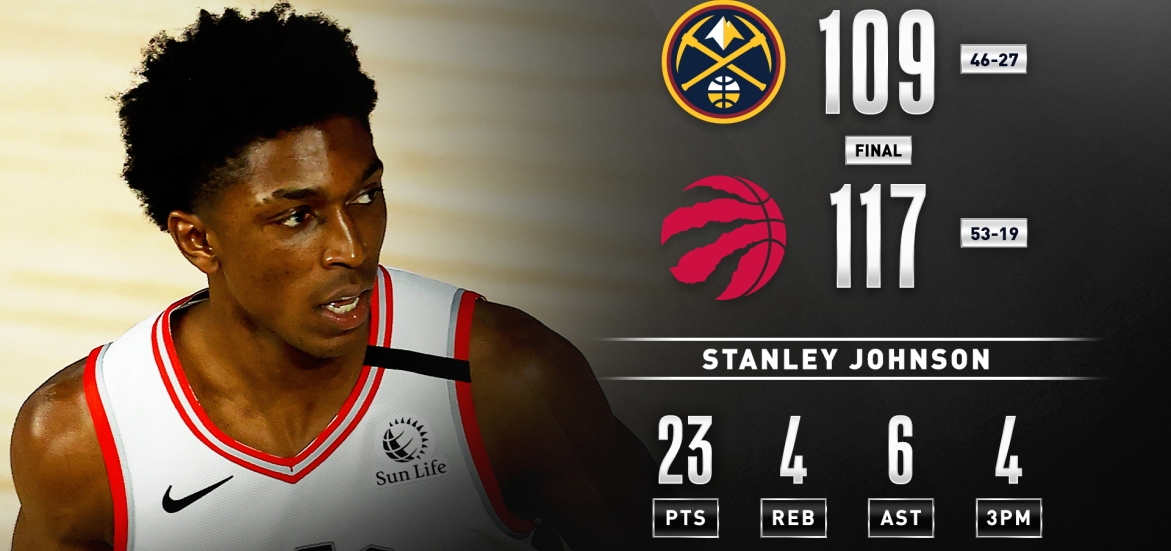 Oι Τορόντο Ράπτορς έκαναν μία ακόμη νίκη στη φούσκα ένα βήμα πριν τα play offs. Επικράτησαν 117-109 των Ντένβερ Νάγκετς. Στα play offs οι Νάγκετς θα αντιμετωπίζουν τους Γιούτα Τζαζ και οι Ράπτορς τους Νετς.