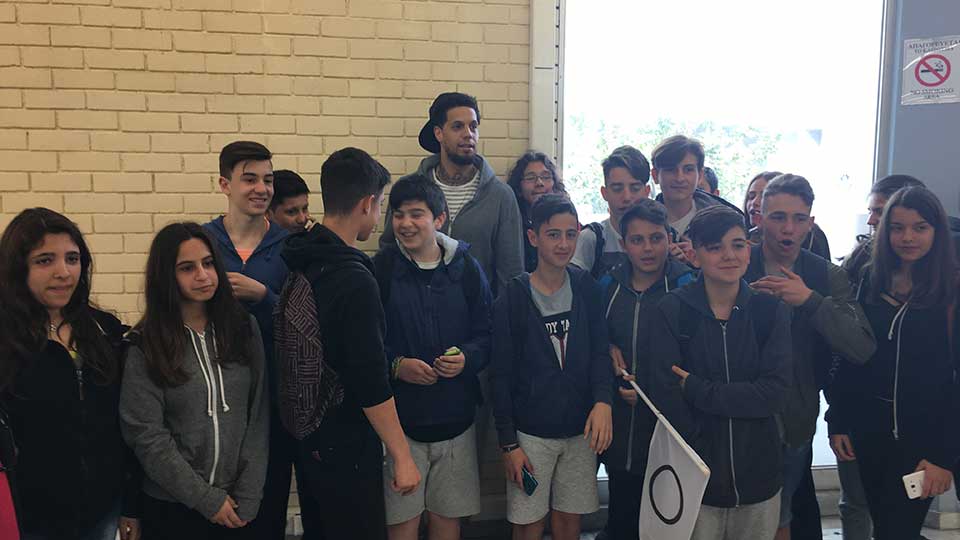 Ο 29άχρονος γκαρντ μίλησε σε περίπου 100 παιδιά που παρακολουθούν το πρόγραμμα ενώ δεν παρέλειψε να φωτογραφηθεί μαζί τους και να υπογράψει αυτόγραφα.