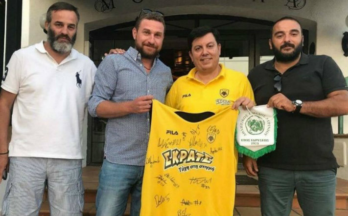 Η ηγεσία της Διοίκησης του Α.Ο.Α. έδωσε το «παρών» χθες (28/08) στο Καρπενήσι και στο «Μοντάνα», όπου προετοιμάζεται η «Βασίλισσα», παρακολούθησε την προπόνηση, ενώ είχε την ευκαιρία να γνωρίσει και συζητήσει με τον προπονητή Σωτήρη Μανωλόπουλο και τα λοιπά στελέχη της ΑΕΚ. Παρόντες από πλευράς του Α.Ο.Α. ήταν ο Πρόεδρος Ντίνος Τσιαμάκης, ο Αντιπρόεδρος Βασίλης Καραχάλιος, ο Γενικός Γραμματέας Θοδωρής Καββαδίας και ο Τιμ Μάνατζερ, Γιώργος Ροκοπάνος.