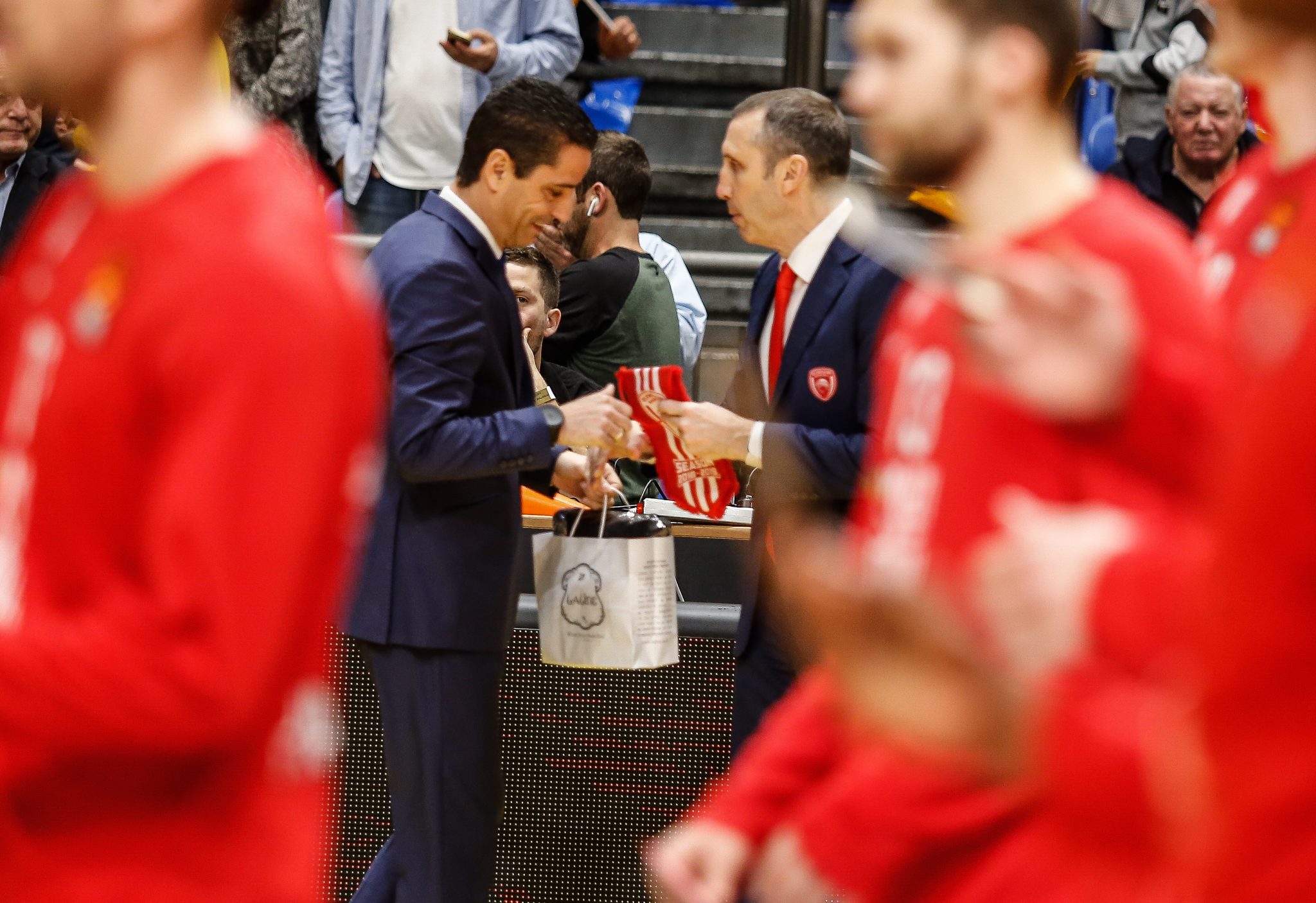 Απίστευτη αποθέωση γνώρισε ο Γιάννης Σφαιρόπουλος μετά το τέλος του αγώνα με όλο το γήπεδο να φωνάζει ρυθμικά του μικρό του όνομα. Ο προπονητής της Μακάμπι Τελ Αβίβ ρωτήθηκε για τη νίκη απέναντι στην πρώην ομάδα του, τον Ολυμπιακό με τον Έλληνα τεχνικό να απαντά: "Το σπίτι μου τώρα είναι εδώ και η Μακάμπι είναι η ομάδα μου. Χαίρομαι που δώσαμε χαρά στους φιλάθλους της ομάδας. Παλέψαμε ως το τέλος και αυτό θέλουμε να κάνουμε. Ήταν μι μεγάλη νίκη, αλλά πρέπει να υπάρχει συνέχεια για να έχει αντίκρυσμα.Υπάρχουν κι άλλα παιχνίδια και πρέπει να είμαστε συνεπείς και έτοιμοι".
