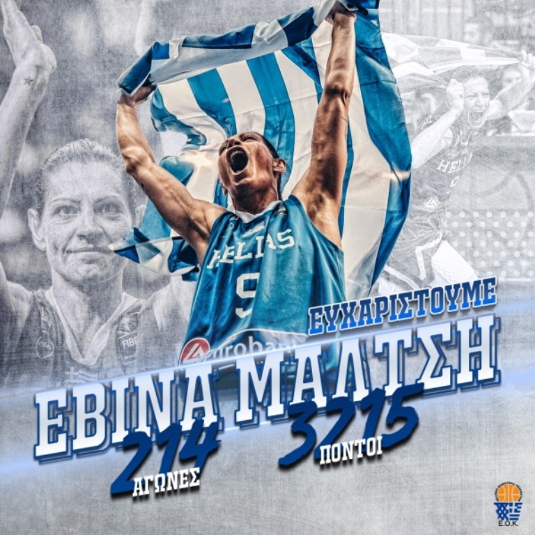 Υποστολή σημαίας στην Εθνική Ελλάδας Γυναικών. Η Εβίνα Μάλτση, στα 40 της, αποφάσισε να αποσυρθεί από το αντιπροσωπευτικό συγκρότημα ύστερα από 214 συμμετοχές και 3.215 πόντους.