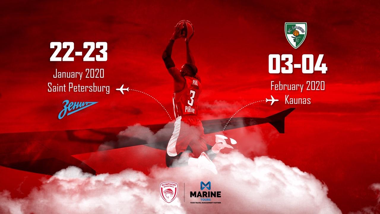 Ο Ολυμπιακός θα ταξιδέψει με πτήση τσάρτερ στην Αγία Πετρούπολη για τον αγώνα με τη Ζενίτ και στη Λιθουανία και τον αγώνα με την Ζαλγκίρις Κάουνας. Στις δύο πτήσεις θα υπάρχουν θέσεις και για φίλους της ομάδας, όπως ανακοίνωσε η "ερυθρόλευκη" ΚΑΕ.