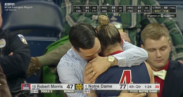 Το Ρόμπερτ Μόρις δεν τα κατάφερε στον πρώτο αγώνα του στην τελική φάση του NCAA. Η τρέλα του Μαρτίου τελείωσε γρήγορα και μαζί τελείωσε και η πορεία της Άννας Νίκης Σταμολάμπρου με το Κολλέγιο στο οποίο έγραψε ιστορία τα τέσσερα τελευταία χρόνια. Και η Ελληνίδα γκαρντ δεν μπόρεσε να συγκρατήσι τα δάκρυά της, όταν έγινε αλλαγή για τελευταία φορά.