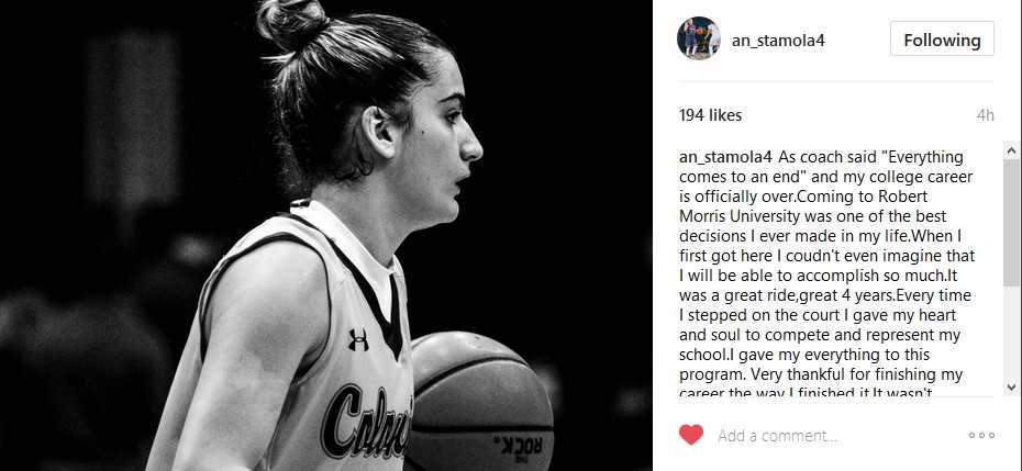 Η Σταμολάμπρου με δάκρυα τόνισε πως «η απόφαση να έρθω στο Ρόμπερτ Μόρις ήταν η καλύτερη της ζωής μου. Θα μου λείψουν οι συμπαίκτριές μου και το τεχνικό επιτελείο».
