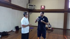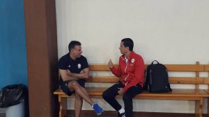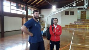 Τρίκαλα BC και Ολυμπιακός παίζουν μεταξύ τους σε φιλικό, στο Μέτσοβο, με τους προπονητές τους να τα λένε πριν από το τζάμπολ.