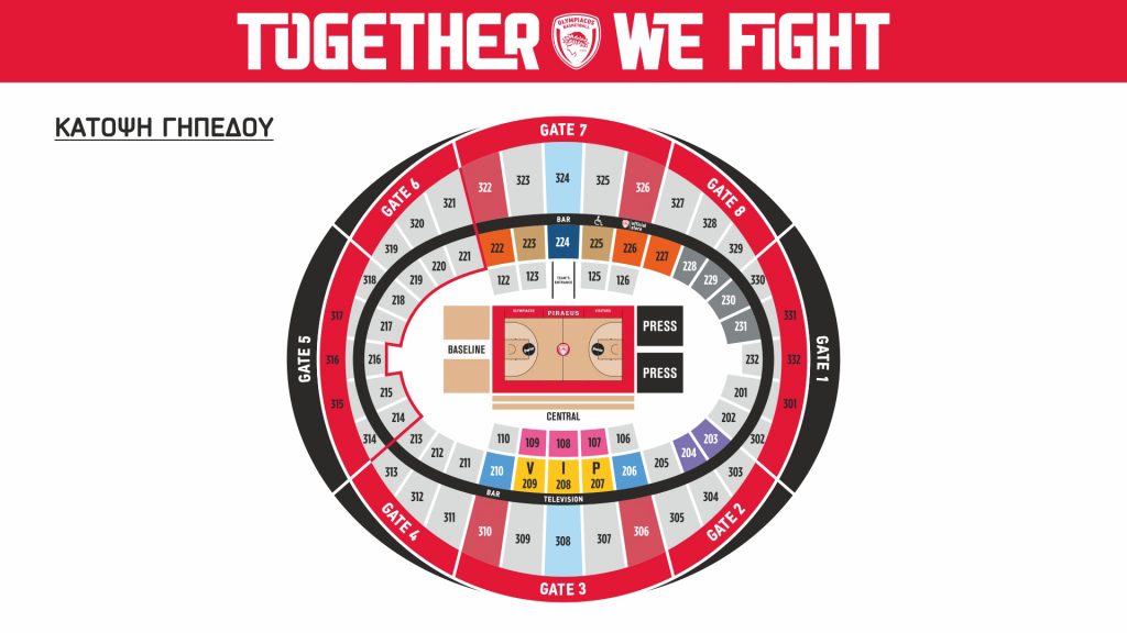 • 210 45 27 471 για τις κατηγορίες COURT SEATS, VIP, EXECUTIVE A (τμήματα: 107/108/109) και EXECUTIVE B (τμήματα: 206/210).