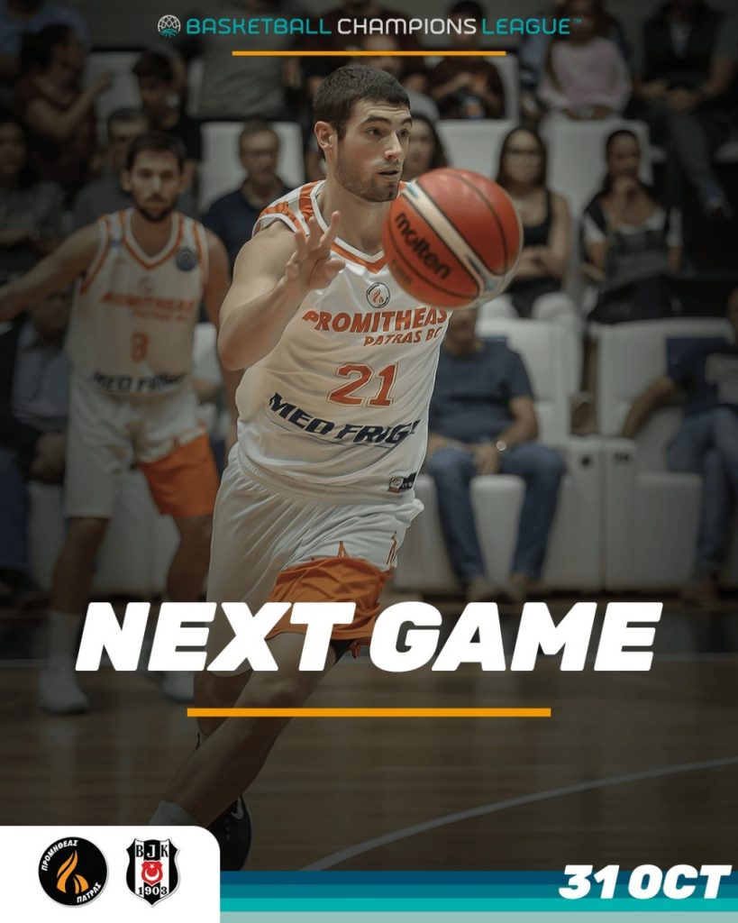 Η ανακοίνωση: «Το ταξίδι συνεχίζεται! Την Τετάρτη 31 Οκτωβρίου, στις 7:30 το απόγευμα, η κεντρική σάλα του "Δημήτρης Τόφαλος" φοράει -και πάλι- το ευρωπαϊκό της κοστούμι και ο Προμηθέας ετοιμάζεται να φιλοξενήσει ένα σπουδαίο ευρωπαϊκό αγώνα. Ο αήττητος Ευρωπαίος Προμηθέας Πάτρας, με το εντυπωσιακό 3Χ3 στο BCL και την ορμή από την μεγάλη Σαββατιάτικη νίκη (για το πρωτάθλημα) επί της κατόχου του τίτλου του BCL, ΑΕΚ, υποδέχεται την πολύ ισχυρή τουρκική Μπεσίκτας, σε μια δυνατή ευρωπαϊκή μάχη, με στόχο την νίκη που θα τον διατηρήσει αήττητο στην κορυφή του 4ου Ομίλου στο Basketball Champions League.
