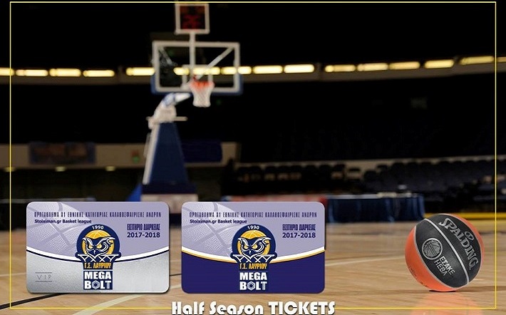 Η ανακοίνωση: «Το «ΛΑΥΡΙΟ-ΜEGABOLT» πραγματοποιεί την καλύτερη σεζόν στην ιστορία του και ευχόμαστε η πορεία αυτή να συνεχιστεί στο β’ γύρο του πρωταθλήματος όπου θα φιλοξενήσουμε στο «σπίτι» μας Ολυμπιακό Π., Παναθηναϊκό Superfoods, Τρίκαλα ΒC ARIES, Ρέθυμνο Cretan Kings, Κόροιβο, Πανιώνιο ΒΙΚΟΣ COLA, ΓΣ Λάρισας ΦΑΡΟΣ. Με χαρά ανακοινώνουμε τη διάθεση των εισιτηρίων διαρκείας του 2ου γύρου του πρωταθλήματος stoiximan.gr Basket League 2017-2018 επιστρέφοντας την αγάπη σας στην ομάδα με χαμηλές τιμές: