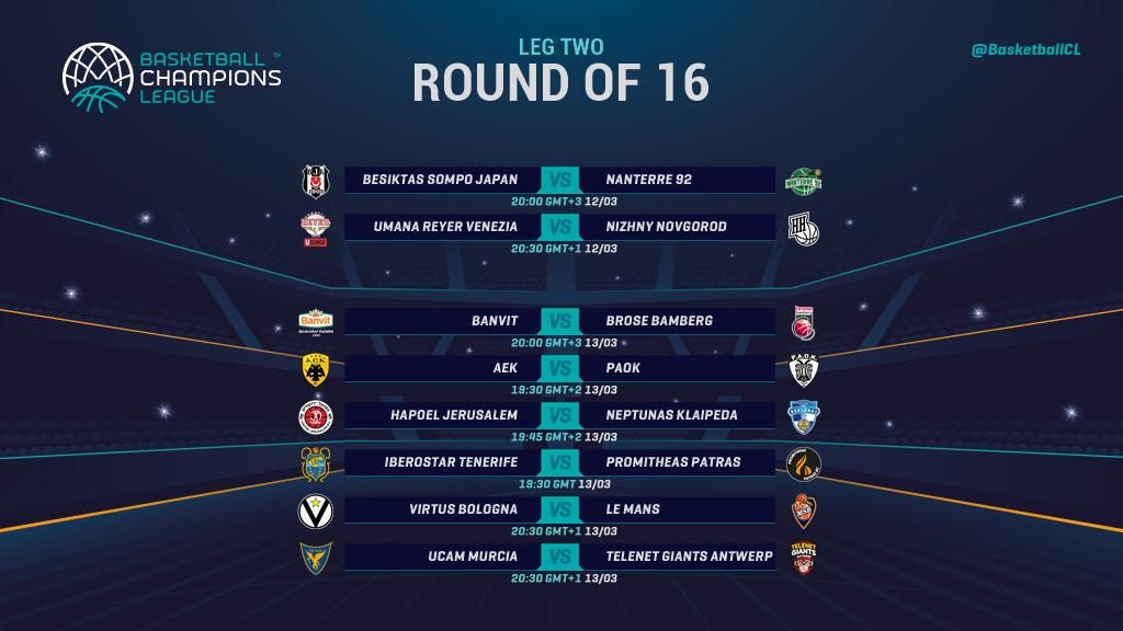 Το ελληνικό ενδιαφέρον στο Basketball Champions League έχει σφραγίδα με την αυριανή ημερομηνία, αλλά τα πρώτα εισιτήρια για τους οχτώ της διοργάνωσης θα κοπούν απόψε (12/3). Στις 19.00 η Μπεσίκτας υποδέχεται την Ναντέρ και στις 21.30 η Ρέγερ Βενέτσια την Νίζνι Νόβγκοροντ.