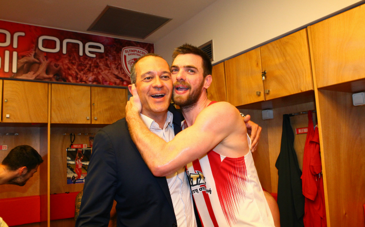 Οι “ερυθρόλευκοι” πανηγύριζαν εντός αποδυτηρίων την συμμετοχή τους στο Final-4 με τον έναν εκ των δύο προέδρων της ΚΑΕ να εισέρχεται και να αγκαλιάζει τους παίκτες και να τους φιλάει.